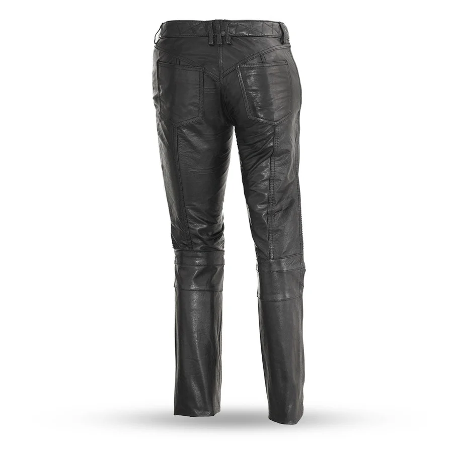 The Hazel is it! These lightweight cowhide pants have a lot of traditional features like pockets front and back, stretch panels above the knee for comfort while riding, and satin lining. The quilted detail on the belt and front pockets add some style.