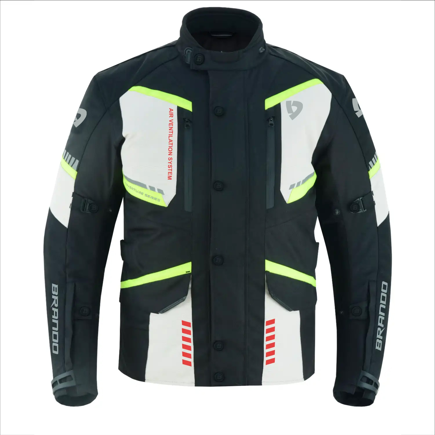 From the world of adventure motorcycle gear, Brando Mateo is the perfect combination of style and protection. This textile Jacket is made from the highest-quality materials and comes with all the bells and whistles that you could possibly need. With our Cordura Polyester construction, you can expect a light yet durable jacket that will stand up to anything you throw at it. It is also equipped with CE-approved protection and reinforced safe seams, so your safety is assured no matter what. The Mateo is water and heat-resistant with its waterproof fabric and breathable lining.