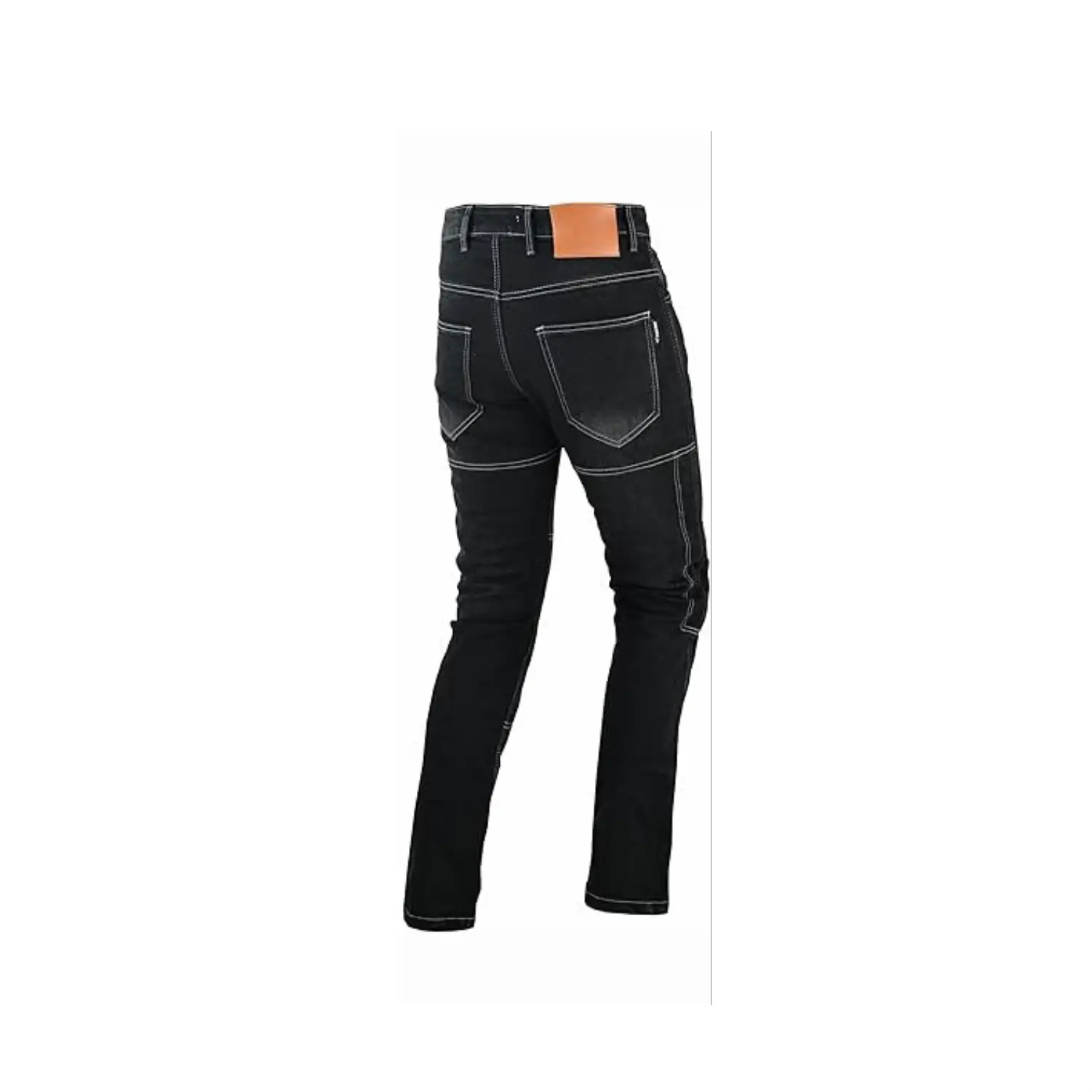 The Brando denim exterior. Perfect to wear over your boots Modern motorbike-style fashion jean. Heavy-duty double-stitched construction. Traditional 5 pocket design. Easy detachable/removable knee protectors.